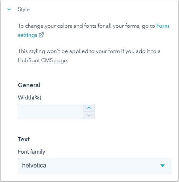 Please note: themes and styles set in the form editor will only apply to embedded forms or standalone form pages. Forms on your HubSpot pages can only be styled with the form module style options in the content editor.